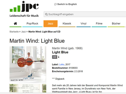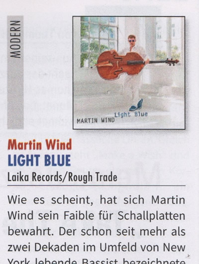 "That a German-born bassist can so accurately capture the Brazilian feeling speaks well for the international language of music. “Light Blue” is a strong addition to Wind’s discography, and a superb introduction to his music." - by Thomas Cunniffe